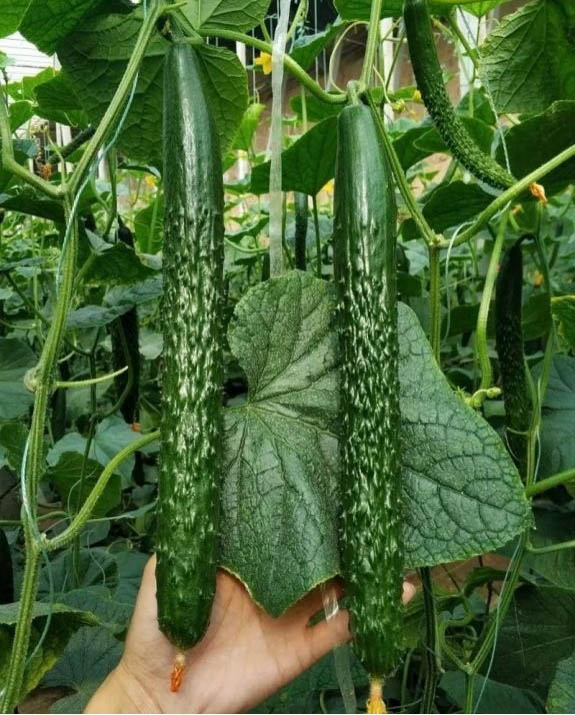 一代杂交。中熟,生长势强。瓜条顺直,瓜长33cm左右,瓜把短,瓜色深绿,刺密,主蔓结瓜为主。抗枯萎病、霜霉病。耐高温能力强。