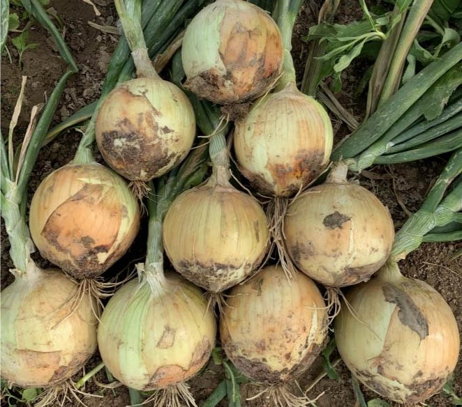 Short day, early-mid maturity, vigorous plant with moderate wax powder, yellow and nearly high global bulb, firm, 10-12cm in diameter, good fresh taste, the yield is 6-7 tons/ mu, suitable for autumn sowing in short day areas.